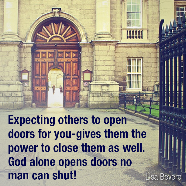 Expecting others November 23, 2015 Expecting others to open doors for you-gives them the power to close them as well. God alone opens doors no man can shut! – Lisa Bevere